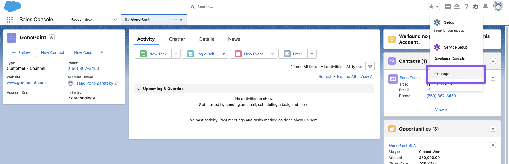 - From the record page you want to add the Pocus embed to, hit the gear button and "Edit Page".