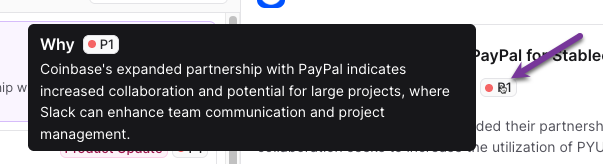 Alert Priority: Each alert will show a priority. Hover your mouse icon over the priority rating (such as P1) to learn why the alert was considered the designated priority.