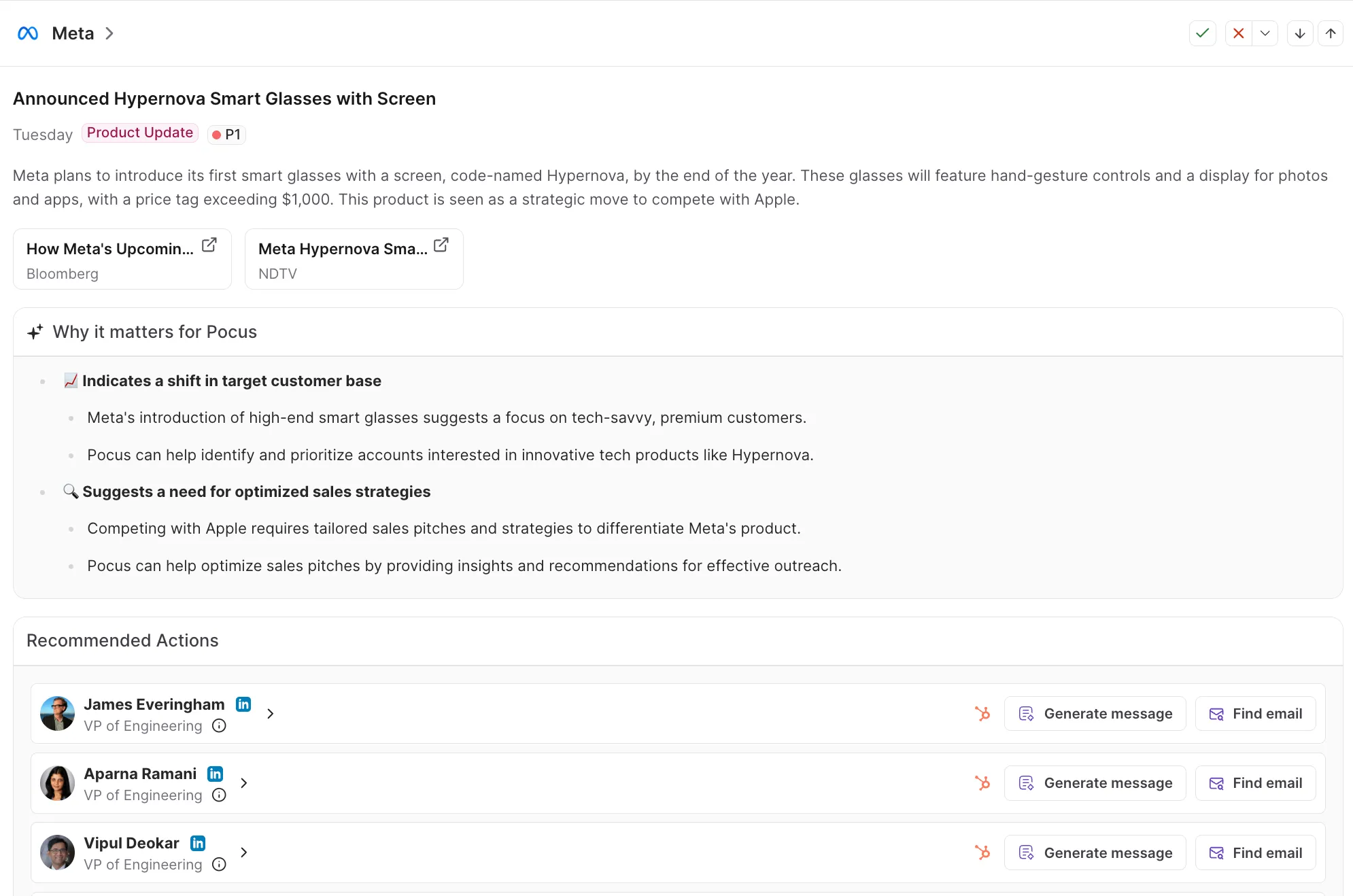 Most AI powered email generators use generic & commoditized data. Pocus AI agents act like real reps and do the first level of reasoning for you to understand your value props and key insights about an account. The result is compelling email content at every touchpoint.