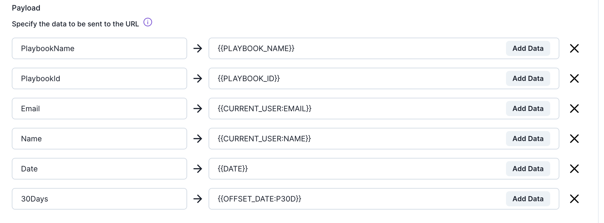 Introducing the secret In N’ Out menu of Pocus! In addition to the data points you’re pulling in from your CRM and Data Warehouse –– what you see when you click Add Data –– Pocus can also pass back a handful of custom variables to your different tools when setting up an action.