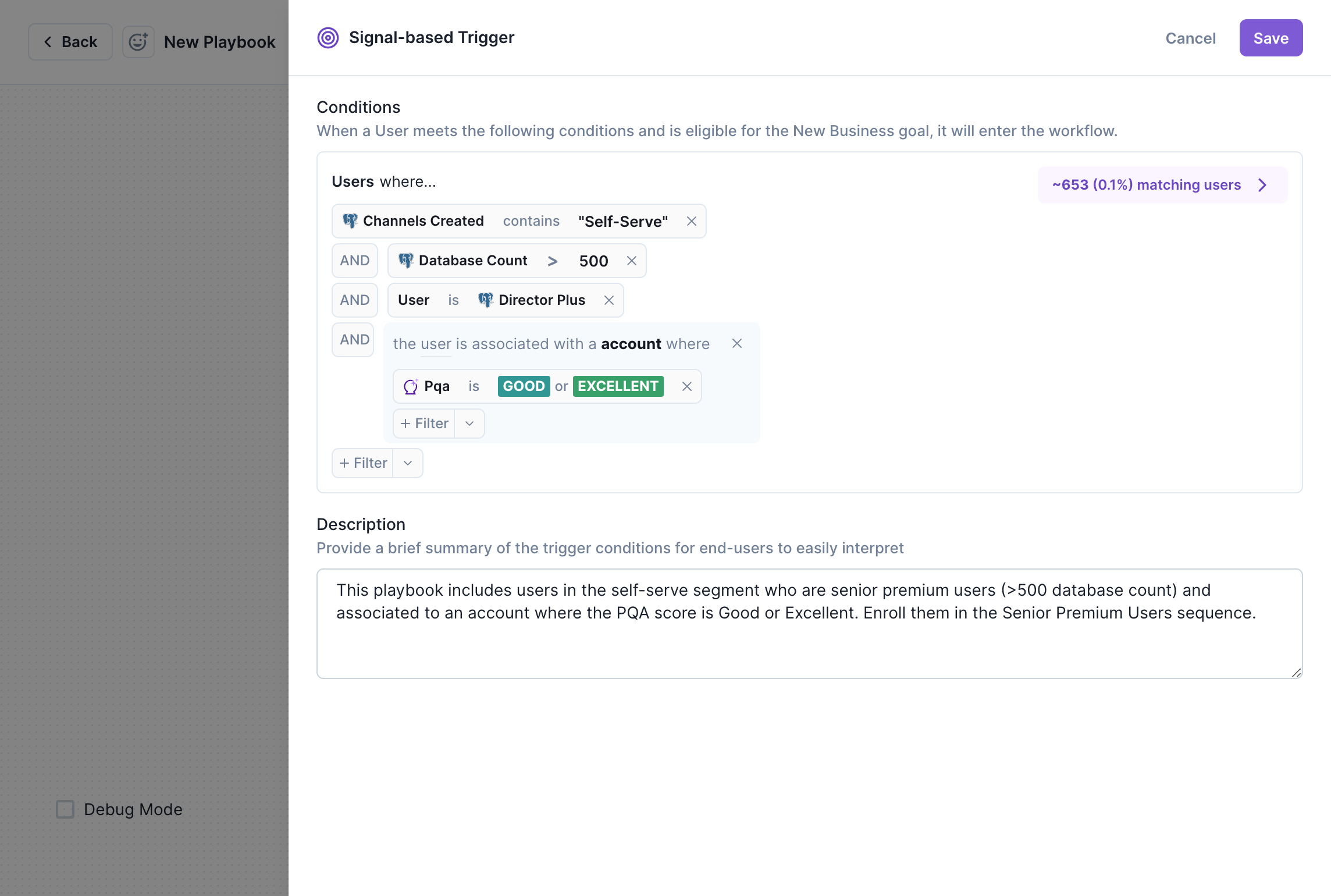 Example: You want to create a Playbook that focuses on finding senior premium users in a self-serve account.