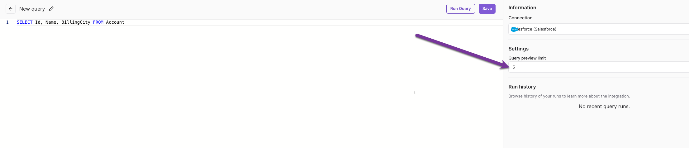 The SQL Query Editor provides an interactive environment to test and preview your queries. The Query Preview Limit field will control the number of rows returned in the preview. The default preview limit is 5, but you can modify this as needed.