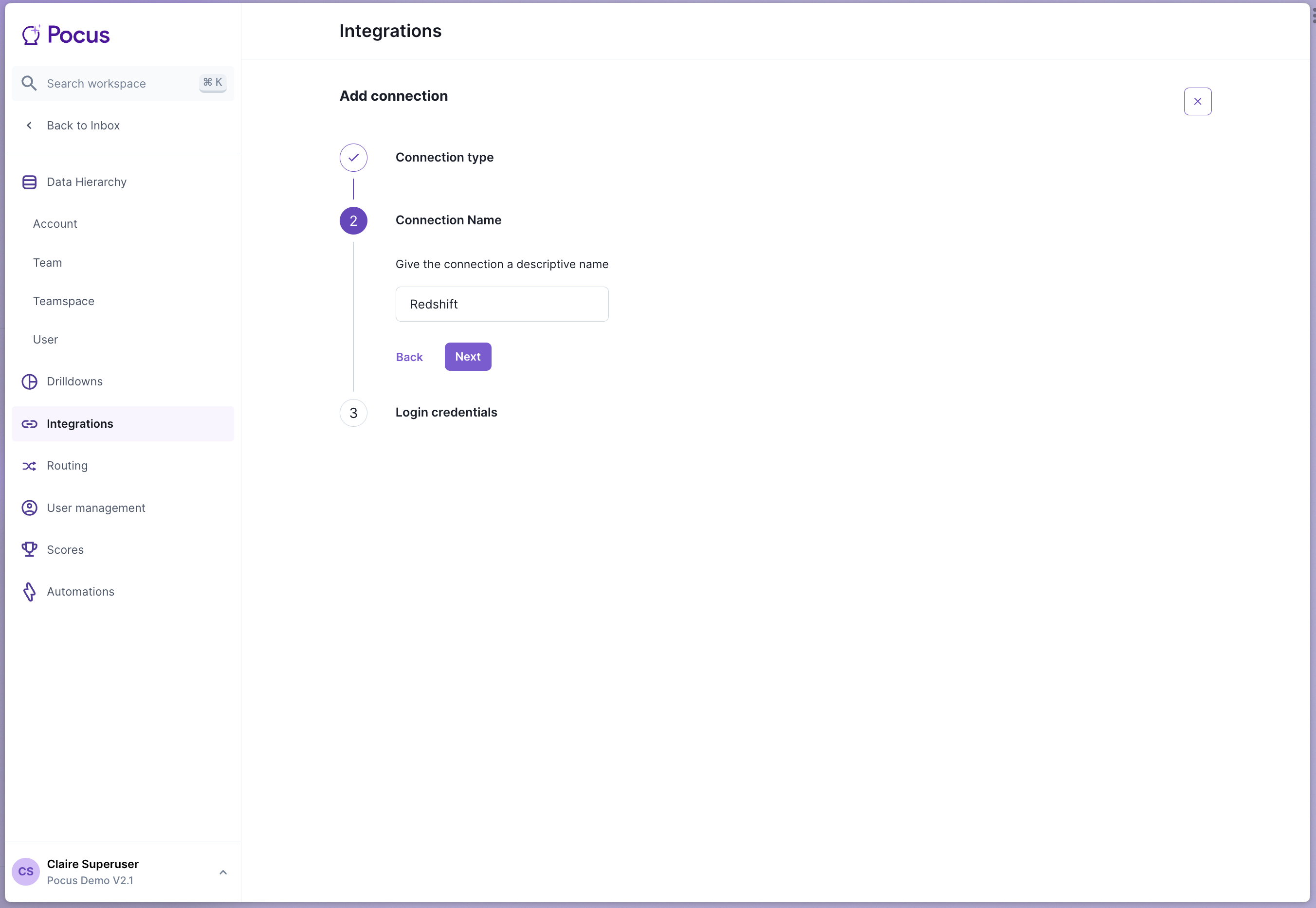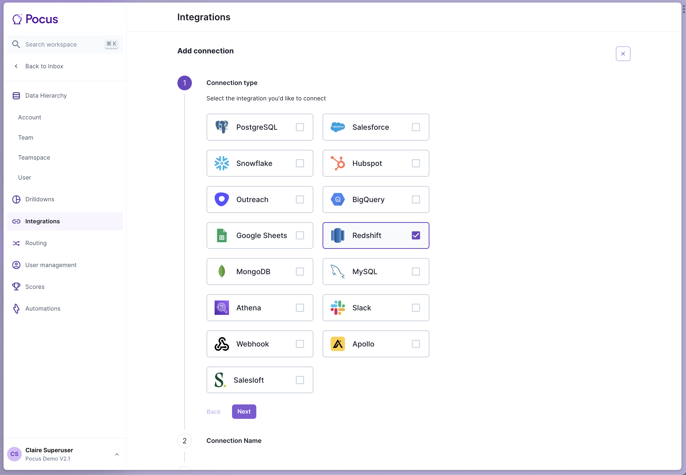 - Navigate to the Pocus Integrations Page and press Add a Connection