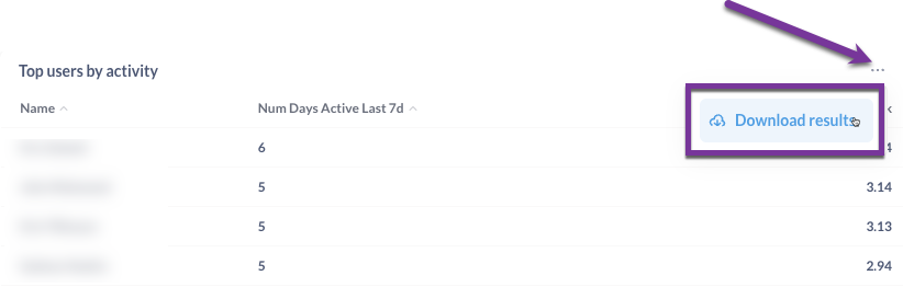 Select the three radio buttons in the upper right corner of any reporting section for an option to Download Results. This will allow you to download the raw report data to join with your own internal data.