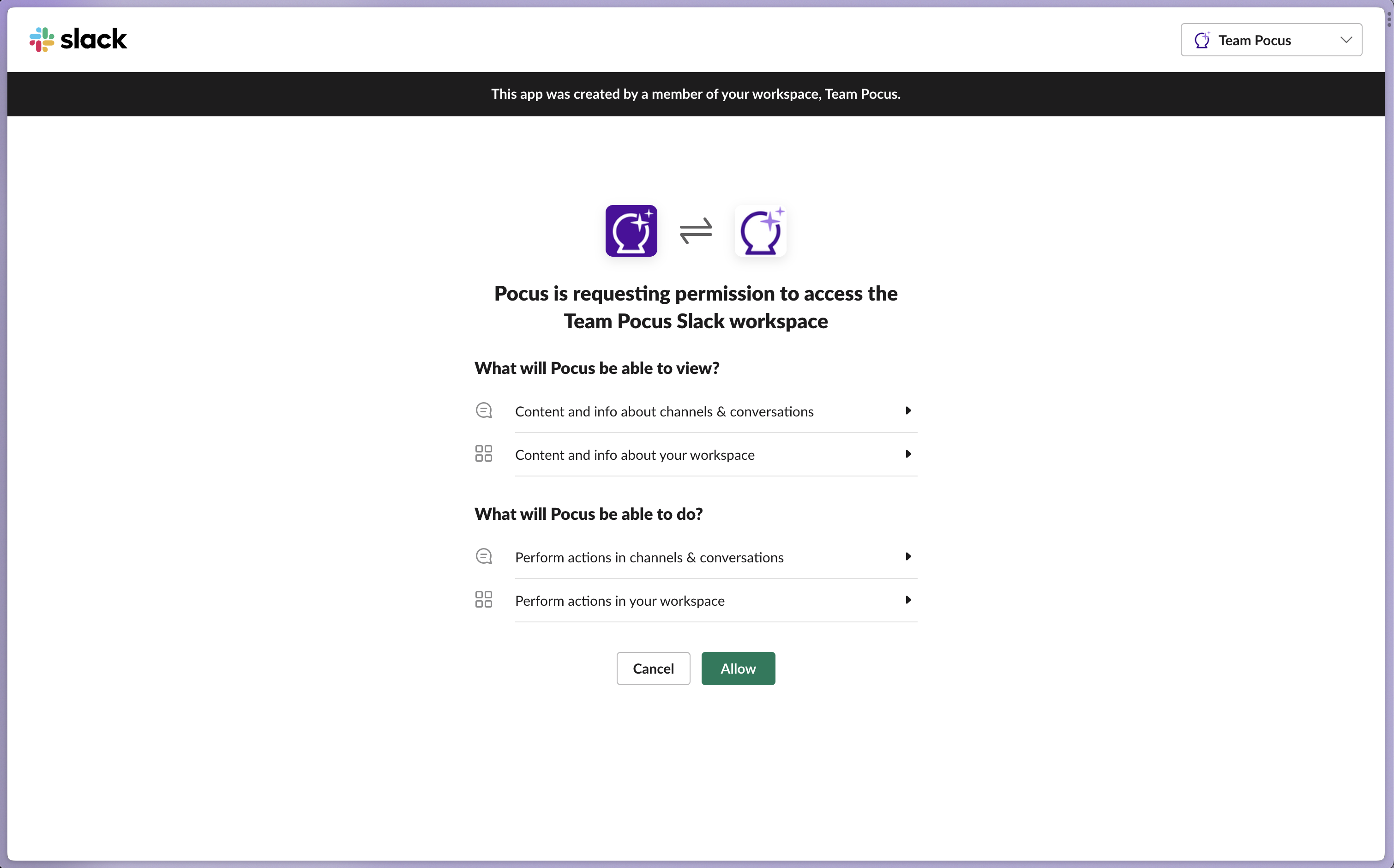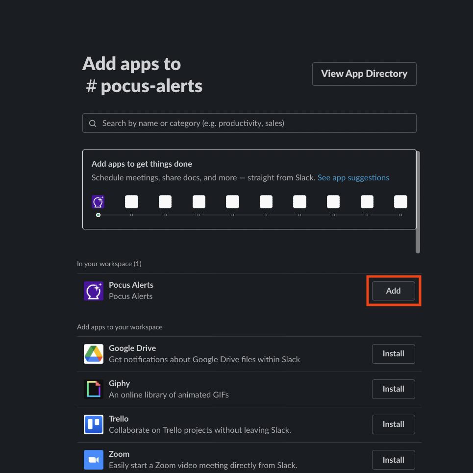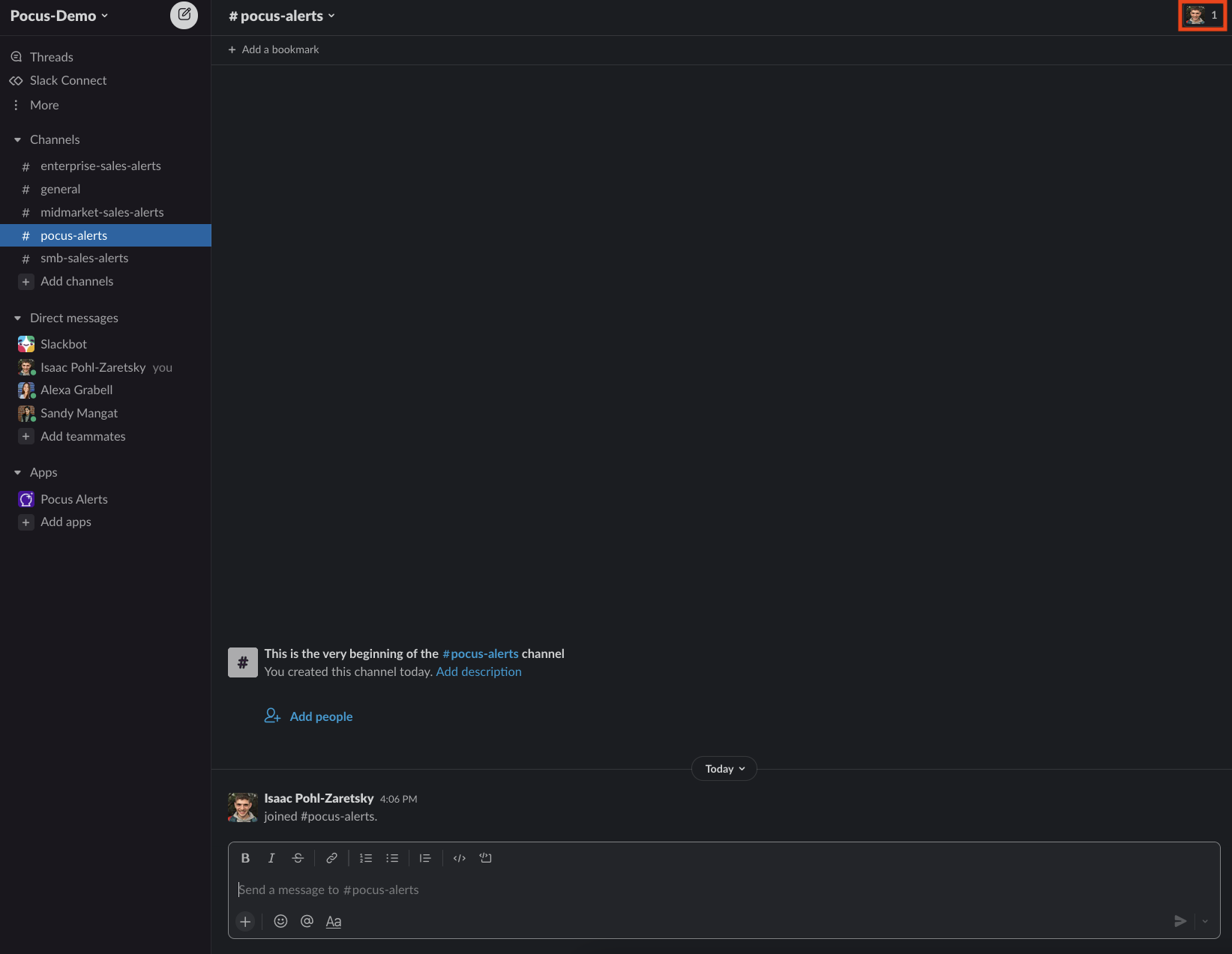 - You're all done! The Pocus Alerts bot for Slack is now added to your Slack instance.