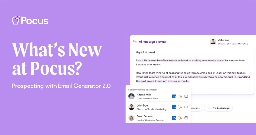 | April 24: Prospecting With Pocus - Email Generator 2.0 Smart messages built on top of the most comprehensive prospect intelligence isn’t a pipe dream - it’s a reality in Pocus. |