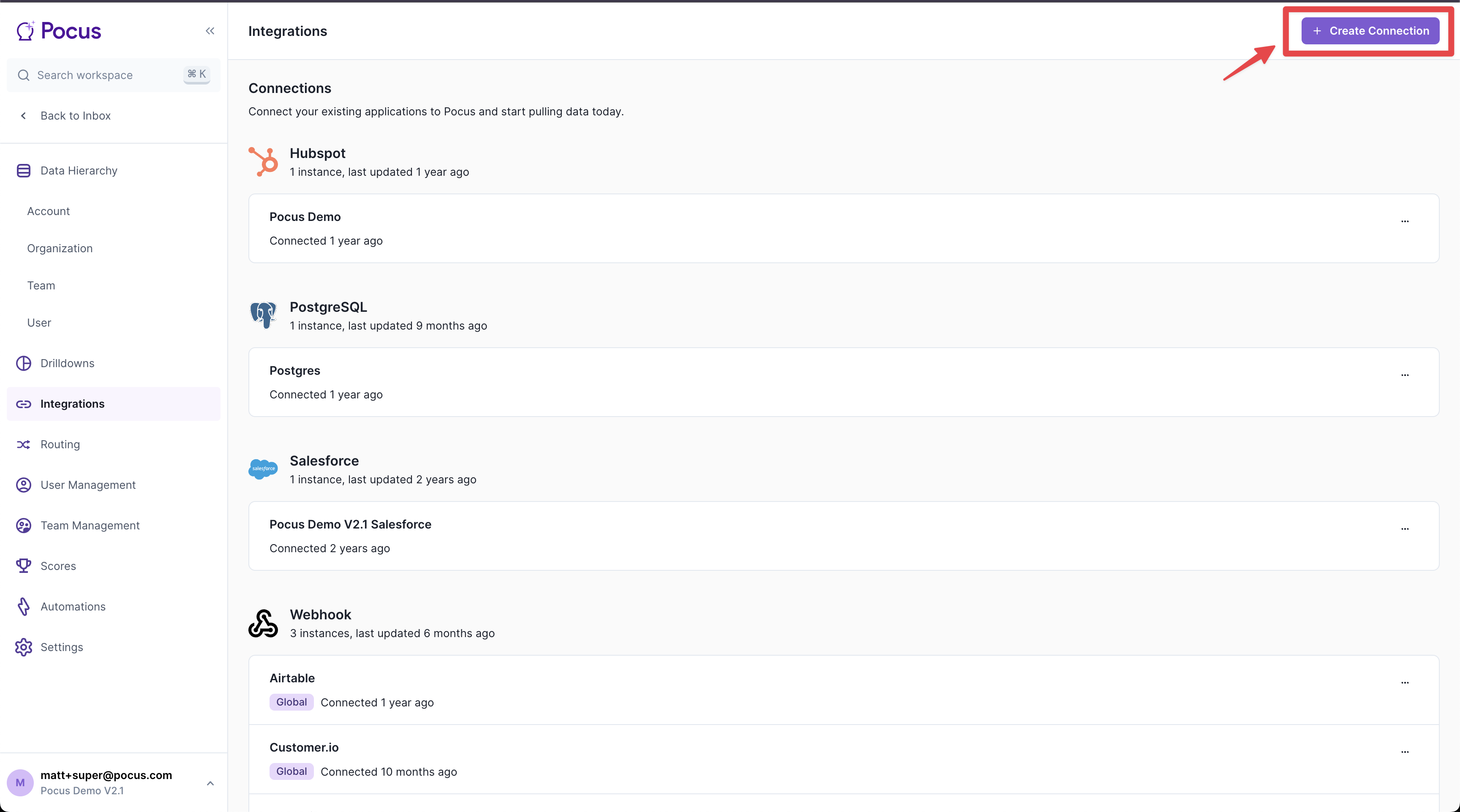 Navigate to the Pocus Integrations Page: Go to the Pocus Integrations Page and select Add a Connection.
